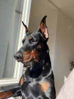 Lydig och busig dobermann tik som älskar uppmärksamhet.