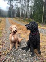 2 labradoodles. Mor och dotter. Begränsat med avancerade ?trix? men ligger kvar om man säger till dem. ??